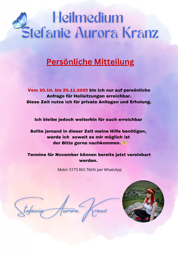 Mit viel Feingefühl, Intuition und ganz viel Herz öffne ich mich für Botschaften und Heilströme, für dich und deine Seelenreise.